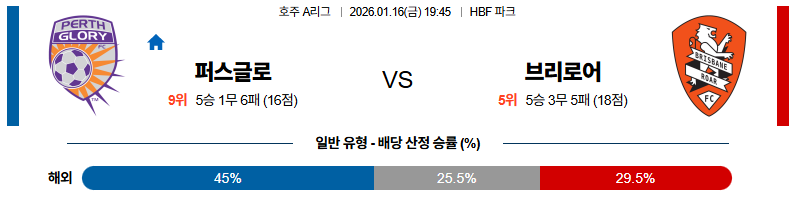 01월16일 퍼스글로리:브리즈번로어 호주A리그 분석 및 예측 스포츠중계:스포츠무료중계
