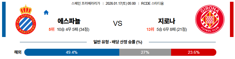 01월17일 지로나:에스파뇰 라리가 분석 및 예측 스포츠중계:스포츠무료중계
