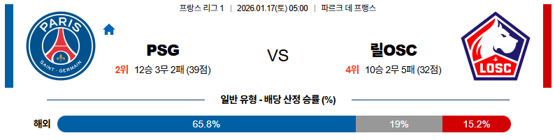 01월17일 파리생제르망:릴 리그앙 분석 및 예측 스포츠중계:스포츠무료중계