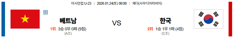 01월24일 베트남:대한민국 U23아시안컵 분석 및 예측 스포츠중계:스포츠무료중계