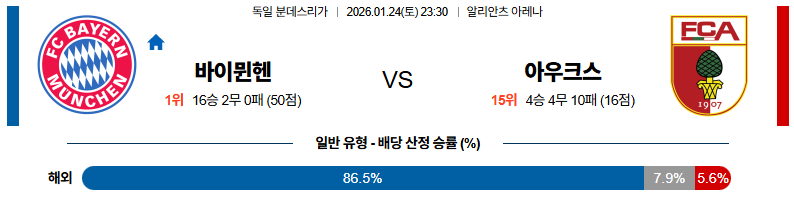 01월24일 아우크스부르크:뮌헨 분데스리가 분석 및 예측 스포츠중계:스포츠무료중계
