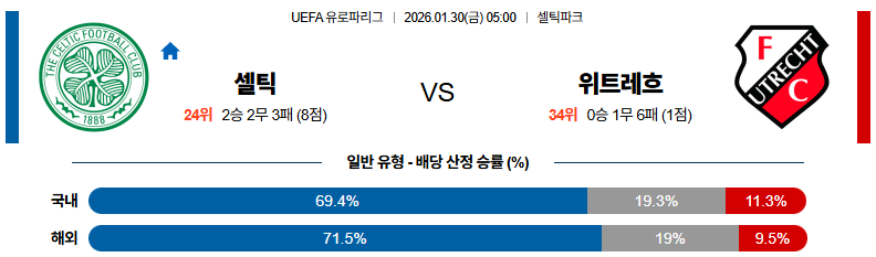01월30일 셀틱:위트레흐트 UEFA유로파리그 분석 및 예측 스포츠중계:스포츠무료중계