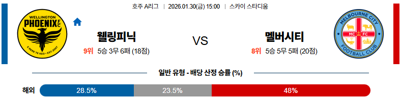 01월30일 웰링턴피닉스:멜버른시티 호주A리그 분석 및 예측 스포츠중계:스포츠무료중계
