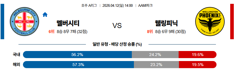 멜버른시티는 이번 경기에서 굳이 어렵게 갈 이유가 없습니다. 전방 두 선수의 침투 속도와 2선 연결만 원활하게 이루어진다면, 웰링턴 피닉스의 느린 중앙 수비를 상대로 결정적인 찬스를 여러 차례 만들어낼 수 있습니다. 반면 웰링턴 피닉스는 수비 숫자를 세워도 순간 반응과 회전 속도에서 문제가 드러나는 순간, 전체 조직이 흔들릴 수 있습니다. 따라서 이번 경기는 홈팀이 빠른 전방 침투와 직선 전개로 흐름을 장악할 가능성이 높습니다.