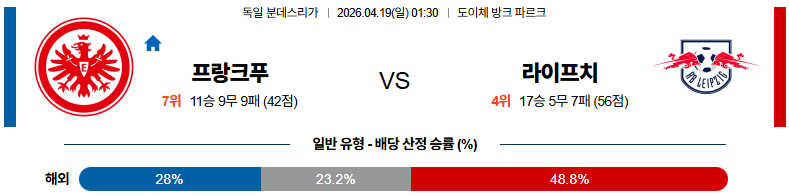 04월19일 프랑크푸르트 : 라이프치히 분데스리가 분석 및 예측 스포츠중계,스포츠분석