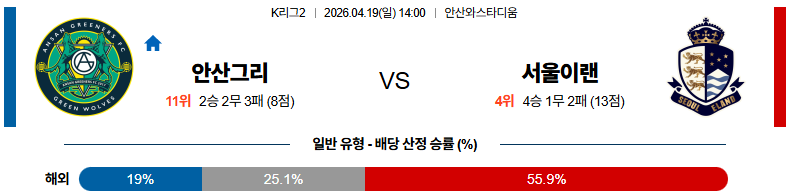 04월19일 안산:서울이랜드 K리그2 분석 및 예측 스포츠중계:스포츠무료중계