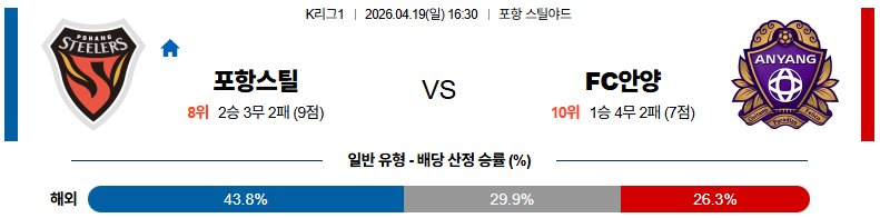 04월19일 포항:안양 K리그1 분석 및 예측 스포츠중계:스포츠무료중계