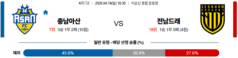 04월19일 충남아산:전남 K리그2 분석 및 예측 스포츠중계:스포츠무료중계