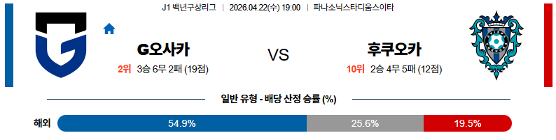 04월22일 감바오사카 : 후쿠오카 J리그 분석 및 예측 스포츠중계,스포츠분석