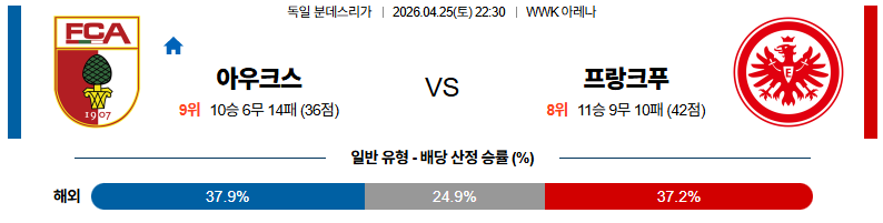 04월25일 아우크스부르크:프랑크푸르트 분데스리가 분석 및 예측 스포츠중계:스포츠무료중계