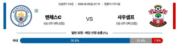 04월26일 맨체스터시티 : 사우샘프턴 잉글랜드FA컵 분석 및 예측 스포츠중계,스포츠분석
