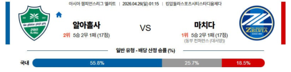 04월26일 알아흘리 : 마치다 AFC챔피언스리그 분석 및 예측 스포츠중계,스포츠분석
