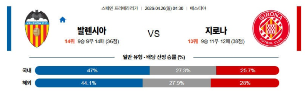 04월26일 발렌시아 : 지로나 분데스리가 분석 및 예측 스포츠중계,스포츠분석