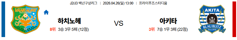 04월26일 하치노헤 : 아키타 J리그 분석 및 예측 스포츠중계,스포츠분석