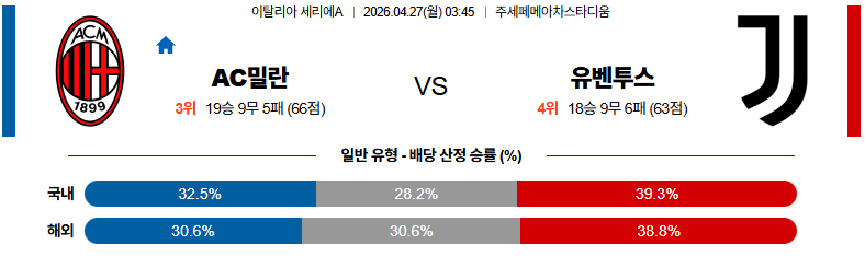 04월27일 AC밀란:유벤투스 세리에A 분석 및 예측 스포츠중계:스포츠무료중계