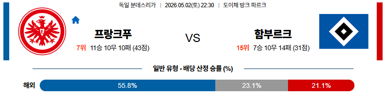05월02일 프랑크푸르트:함부르크 분데스리가 분석 및 예측 스포츠중계:스포츠무료중계