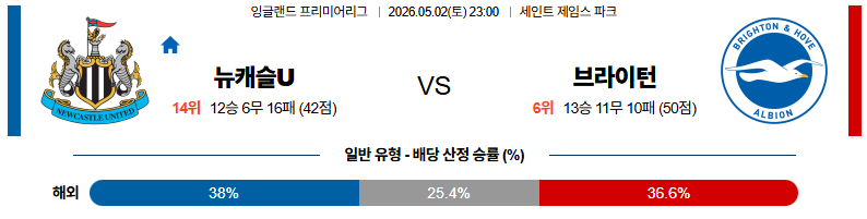 05월02일 뉴캐슬:브라이튼 프리미어리그 분석 및 예측 스포츠중계:스포츠무료중계
