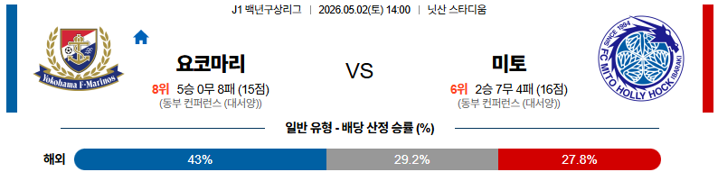 05월02일 요코하마마리노스:미토홀릭 J리그백년구상리그 분석 및 예측 스포츠중계:스포츠무료중계