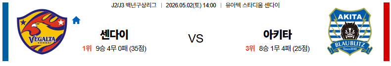 05월02일 센다이:아키타 J리그백년구상리그 분석 및 예측 스포츠중계:스포츠무료중계