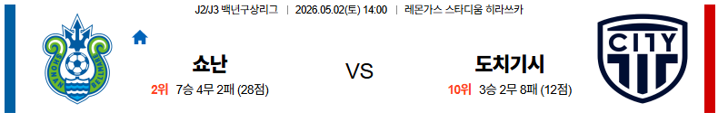 05월02일 쇼난:도치기시티 J리그백년구상리그 분석 및 예측 스포츠중계:스포츠무료중계