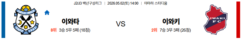05월02일 이와키:이와타 J리그백년구상리그 분석 및 예측 스포츠중계:스포츠무료중계