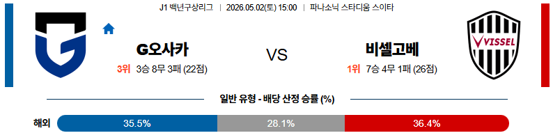 05월02일 감바오사카:비셀고베 J리그백년구상리그 분석 및 예측 스포츠중계:스포츠무료중계