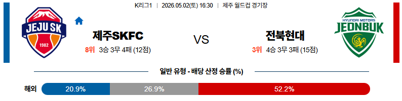 05월02일 제주:전북 K리그1 분석 및 예측 스포츠중계:스포츠무료중계