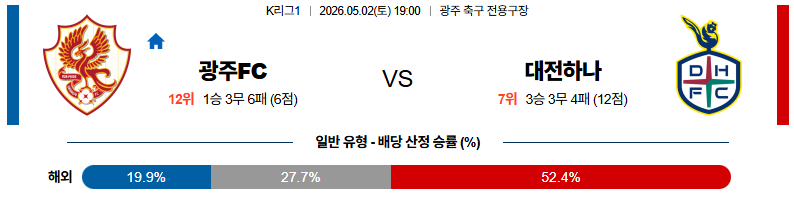 05월02일 광주:대전 K리그1 분석 및 예측 스포츠중계:스포츠무료중계